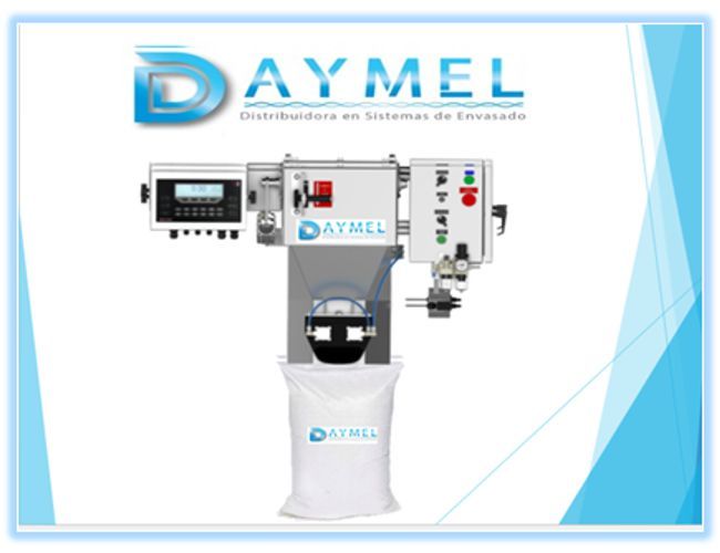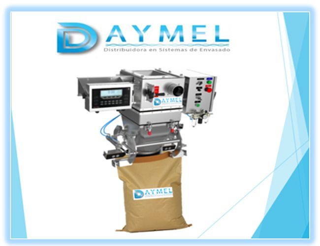 Ensacadora Daymel fabricada en acero inoxidable para envasado en sacos de boca abierta, diseñada especialmente para ensacar polvos. Gracias a su sistema de sujeción para sellar la boca del saco, disminuye notablemente la cantidad de polvo proyectado al medio ambiente durante el llenado. Cuenta además con una salida para conectar a un sistema colector de polvo y un cono abatible para fácil limpieza.