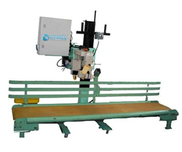 Sistema de costura corte mecánico con pedestal de altura ajustable y banda transportadora ideal para diferentes tipos de cabezales de corte sencillo como Fischbein Mod. 100, Yaohan y Megatex modelos F900A, N980A, Ideal para tener una mayor producción en sus procesos de ensacado, con calidad y eficiencia en la presentación de su producto.