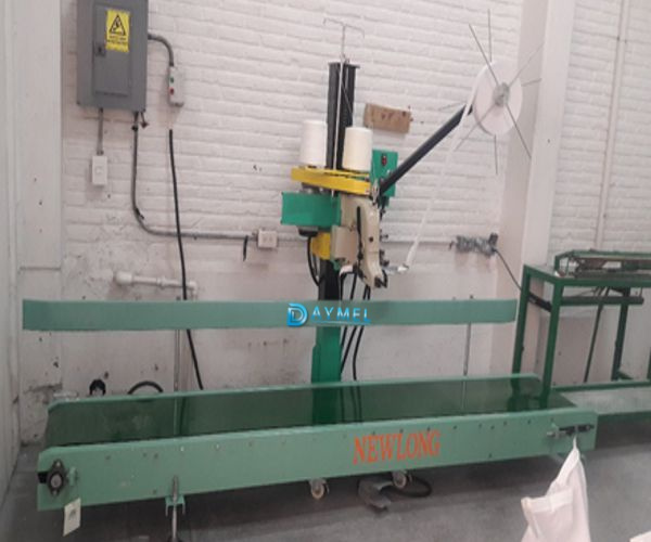 Sistema automático de costura de sacos marca New Long con Pedestal Modelo: A-1-PB, Banda Transportadora de 2.50 mts de largo en acero al carbón, ideal para maquina estacionaria marca New Long, Modelos DS9C, DS9CW. Trabaja con todo tipo de sacos como: papel, polipropileno, polietileno, rafia, yute, etc.